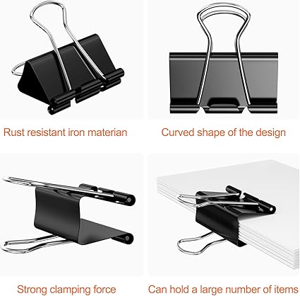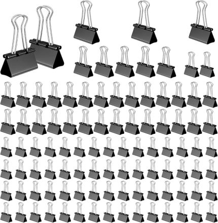 100 adet katlanır mandal, 15 mm/19 mm/25 mm/32 mm kağıt mandalı, metal dosya klipsleri, büro malzemeleri için çok amaçlı ataşlar, mektup kağıdı (siyah)