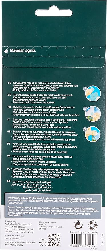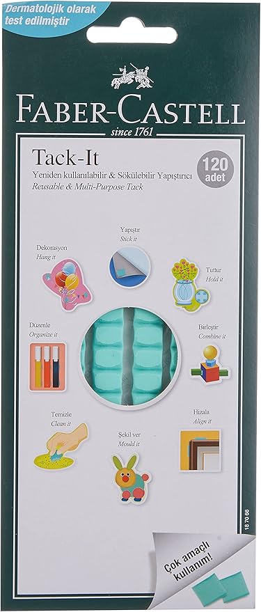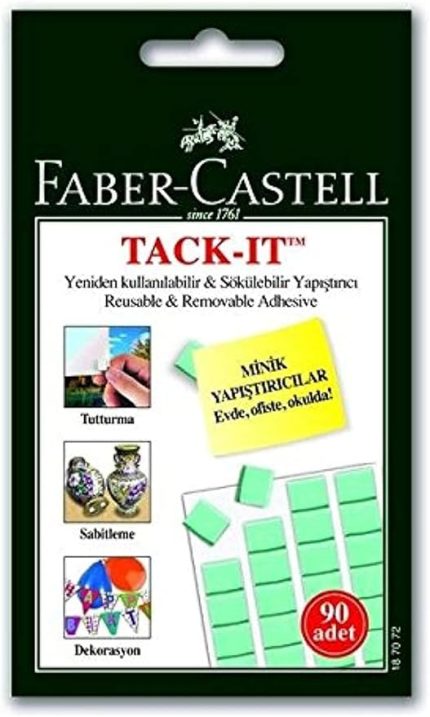 Tack-it Yeşil, 50 gr, 90 Parça, Yeniden Kullanılabilir Hamur Yapıştırıcı, Sökülebilir ve İz Bırakmaz