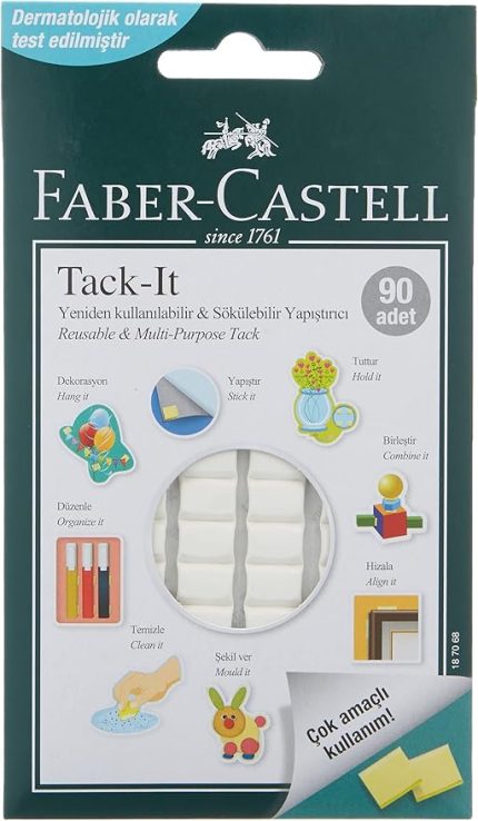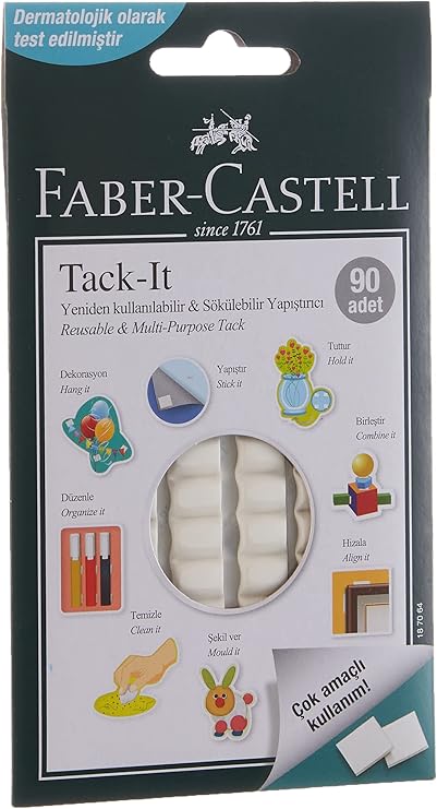Tack-it Beyaz, 50 gr, 90 Parça, Yeniden Kullanılabilir Hamur Yapıştırıcı, Sökülebilir ve İz Bırakmaz