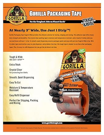Taşıma ve Depolama için Dağıtıcılı Sert ve Geniş Ambalaj Bandı, 7,2 cm x 35 yd, Şeffaf, (1’li Paket)