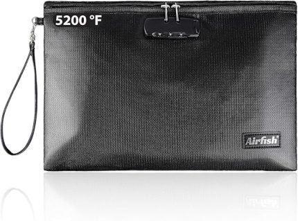 Yanmaz Evrak Çantası, 36 x 25 cm Fermuarlı Cüzdan, A4 A5 Belgeler, Değerli Fotoğraflar, Nakit, Pasaport, Mücevher (Siyah) için Güvenli ve Su Geçirmez Saklama Çantası