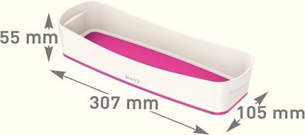 MyBox Uzun Masaüstü Düzenleme Kutusu, Plastik, Beyaz/Metalik Pembe, 52581023