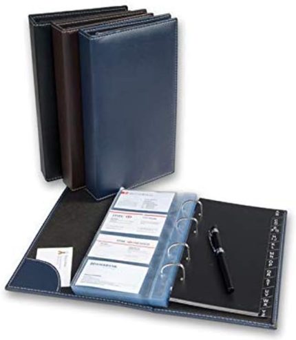 507 Suni deri kartvizitlik mekanizmalı 4 sıralı 24 sayfalı, 192 kart kapasiteli A-Z indeksli kartvizit albümü, Siyah/Kahverengi/Lacivert
