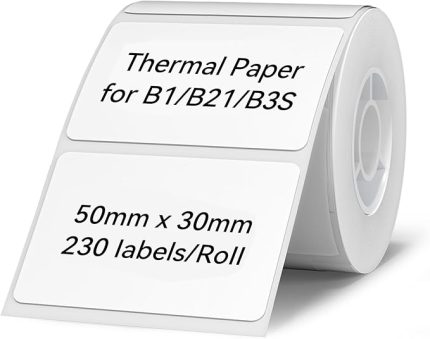 B1/B21/B3S Etikel Yazıcı için Etiketler, 2″ x 1.2″ (50×30 mm) Su Geçirmez Etiket Kağıdı Nakliye Adresi Kendinden Yapışkanlı Etiketleme Değiştirme – 1 Rulo 230 adet (Beyaz)