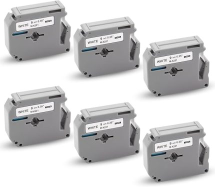 6x uyumlu M-K221S 9 mm 3/8 Brother yedek Brother M-K221S M-K221 MK221S MK 221S Brother P-Touch 60 bantlar 9 mm Brother PT-65 PT-90 PT-80 PT-55 PT-60 PT-85 PT-M95 için, beyaz üzerine siyah