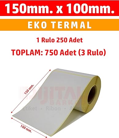 Etiket 150X100 Barkod Etiketi /1 Rulo 250 Adet-15X10.10X15 3 Rulo 750 Adet
