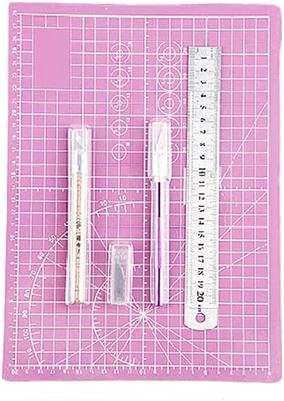 A4 el işi kesme matı seti, kesme matı, cetvel ve maket bıçaklı kesme şablonu, kendin yap el işi alet seti, model yapımı, el işi, dikiş için (pembe)