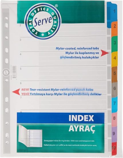 Karton Ayrac Klasik 1-10 Renkli Rakam A4