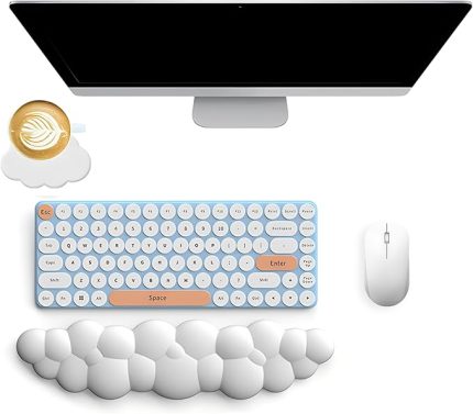 Bilek Desteği Klavye Klavye, Rahat Klavye Avuç İçi Desteği, Ergonomik Bilek Desteği, Hafızalı Köpük, Kaymaz, Bilgisayar ve Dizüstü Bilgisayar için Su Geçirmez Bilek Desteği, Bulut Şeklinde