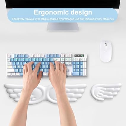Dizüstü bilgisayar için melek kanat şekli bilek dinlenme, ergonomik bellek köpük klavye bilek pedi yumuşak kayma tabanı
