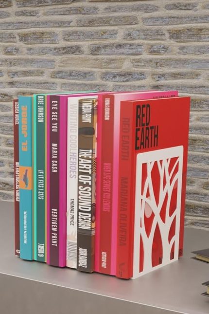 Ağaç Desenli Beyaz Metal Kitap Tutucu, Metal Kitap Desteği, (İkili Set) MK8B