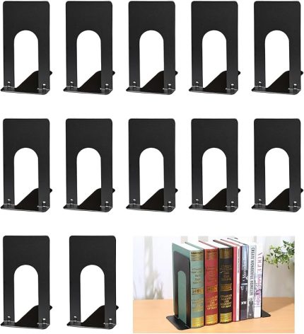6 çift kitap desteği, metal kitap desteği, kitap standı, kitap tutucu, kitap tutucu, kitap tutucu, kitap tutucu, kitap tutucu, kitaplık, çocuklar, ofis, okul, ev, kütüphane için, siyah/12 adet (70 x