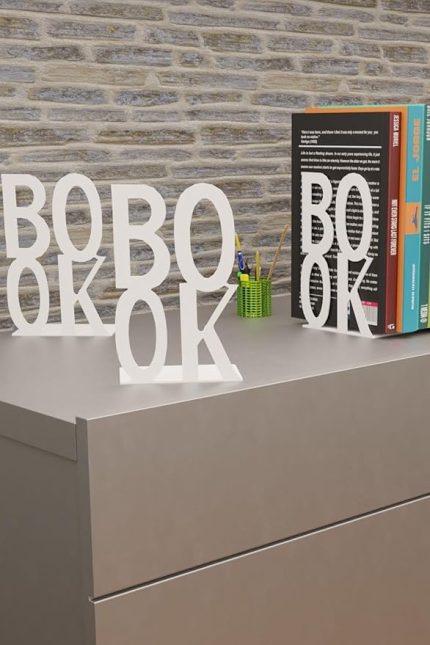 Dekoratif Beyaz Book Yazı Tasarımlı Kitap Tutucu Desteği Metal Kitap Tutucu (İkili Set) MK3B