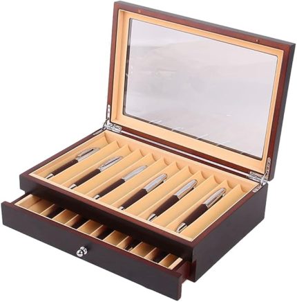 1 adet 23 yuvaları ahşap kalem saklama kutusu şeffaf pencere dolma kalem-toplayıcı kutusu 1