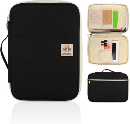 A4 Belgeler Çanta Portföy Düzenleyici Tutucu – Dizüstü Bilgisayar, Ipad, Belgeler ve Kalemler için Çok Fonksiyonlu Seyahat Çantası Kullanışlı Fermuarlı Kılıf (Siyah)