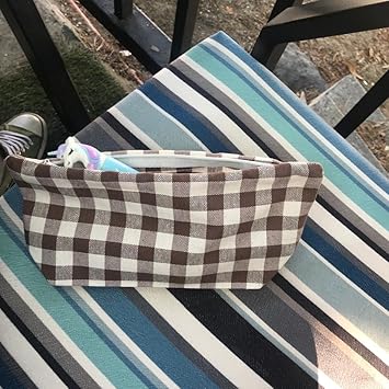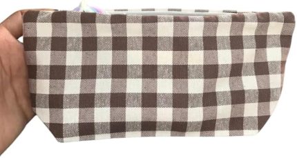 Büyük Pötikareli Yıkanabilir Fermuarlı Tek Gözlü Bez Kalemlik Kalem Kutusu Cüzdan Makyaj Çantası Bez Kalem Kesesi (Kahverengi)