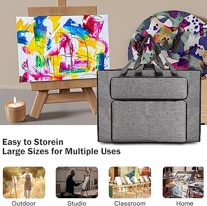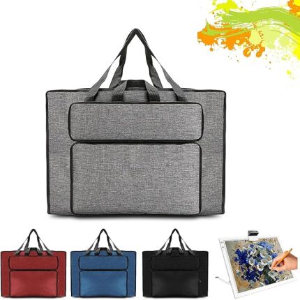 Çizim plakası için taşıma çantası, çizim çantası, A3, su geçirmez suni çanta, sanatçı çantası, el çantası, çok fonksiyonlu çizim çantası, sanat malzemeleri saklama ve seyahat için (gri), Gri,