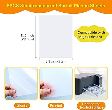 8 Yaprak Yarı Saydam Yazdırılabilir Shrink Plastik Shrink Film Kağıtları Mürekkep Püskürtmeli Yazıcı Çocuklar Kendin Yap Anahtarlık Yapımı, Paskalya Süsü ve Anneler Günü Hediyeleri, 11,6 x 8,3