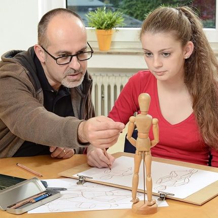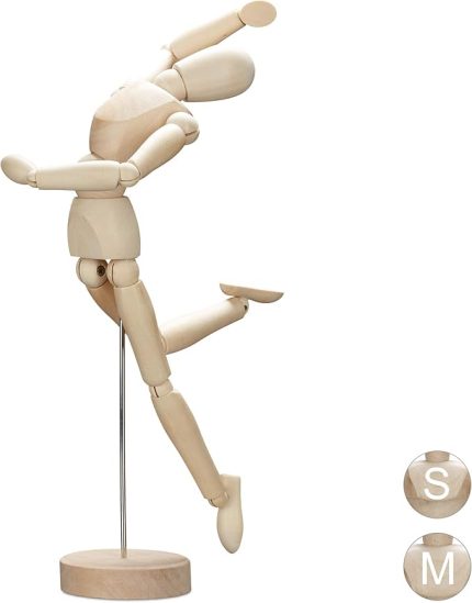 Ahşaptan oyuncak bebek, çizim, el işi, hareketli model bebek, sanatçı, ayaklı, 32,5 cm yüksekliğinde, doğal