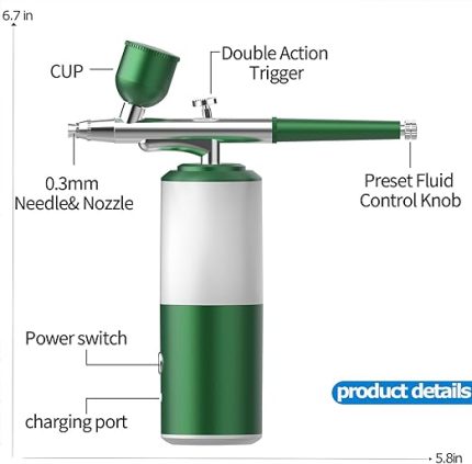 seti, hava kompresörlü, geliştirilmiş 7,4 V 34 psi Airbrush tabancası, şarj edilebilir, taşınabilir, kablosuz, 0,3 mm başlık, makyaj ve pasta dekorasyonu için