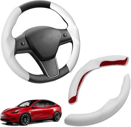 2017-2023 Tesla Model 3 direksiyon kılıfı ve 2020-2023 model Y karbon fiber desenli direksiyon kılıfı, model 3/Y ABS kaymaz segment direksiyon koruması, 2 adet direksiyon koruyucu set (beyaz)