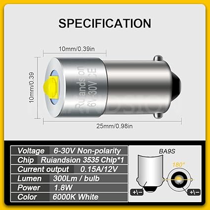 BA9S LED Ampuller Beyaz BA9 53 57 1895 64111 6-30V Polarite Olmayan 3535 1SMD Yonga Setleri 300LM Araba İç Mekan Kubbe Haritası Plaka Torpido Kutusu Işıkları 2’li Paket