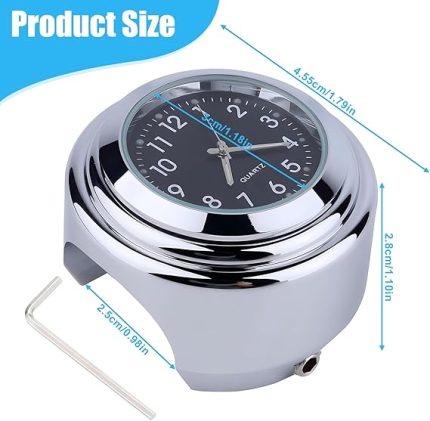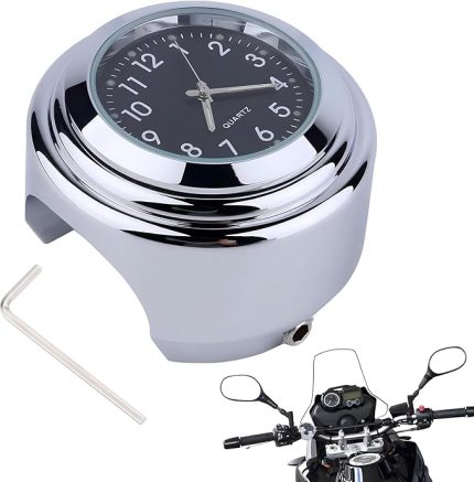 HERZ Motosiklet Gidonu İçin Evrensel Saat – Su Geçirmez, Krom, Parlak Kadran – Bisiklet Uyumlu – Siyah Kabuk ve Gümüş Taban