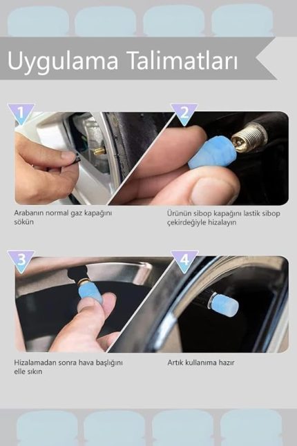4 Adet Basınç Göstergesi Mavi Far Tonu Toz Kapağı Basınç Uyarı Kapakları Sensör Göz Uyarısı Subap Sapı Valf Gövdesi Kapakları Lastik Sensörü Lastik Kapakları Araba Yorulmak
