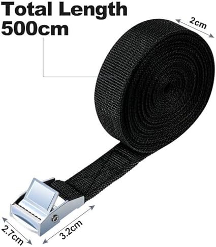 4 adet Gergi Kayışları, 5 m x 2 cm Germe Kayışları, Toka ile Yük Germe Kayışları, Motosiklet, Araba, Bisiklet Taşıyıcı, Çekiş İçin Uygun: 500 kg / Adet (Siyah)