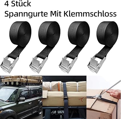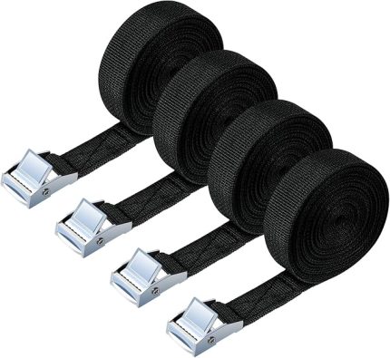 4 adet gergi kayışı, 2,5 m sıkıştırma kilitli gergi kayışı, 250 kg’a kadar taşıma kapasitesi, sabitleme kayışı, bisiklet, motosiklet, bagaj paketleri, kamp için ayarlanabilir sabitleme kayışı (siyah)