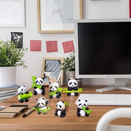 Panda Araba Gösterge Tablosu Süsleri, 8X Panda Heykelcik Araba Gösterge Tablosu Dekoru – Otomotiv Masaüstü Rafı Yatak Odası Ev Üstü için Sevimli Hayvan Figürleri