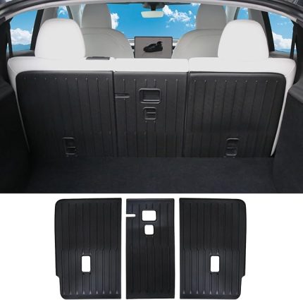 Arka koltuk arka kapak sırtlık koruyucu Tesla Model Y Juniper 2025 (5-koltuk) aksesuarları ikinci sıra koltuklar arka kapak TPE tüm hava paspaslar kargo bagaj astarı 3 adet