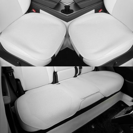 Nappa deri araba koltuğu minderi, 2 ön koltuk minderi ve 1 tezgah altı arka koltuk, ultra ince, nefes alır, kaymaz, otomatik koltuk koruyucu, çoğu otomobil için evrensel, tüm mevsimler, beyaz