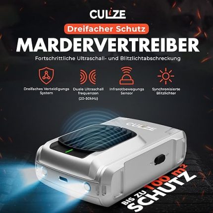 3’ü 1 arada sansar korkutucu, ultrason ve alışma önleyici etki, yakl. 100 m² için. Kızılötesi sensörlü ve 3 kat korumalı sansar kovucu. Otomobil, tavan arası, ev, garaj, kiler, bahçe kulübesi
