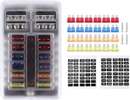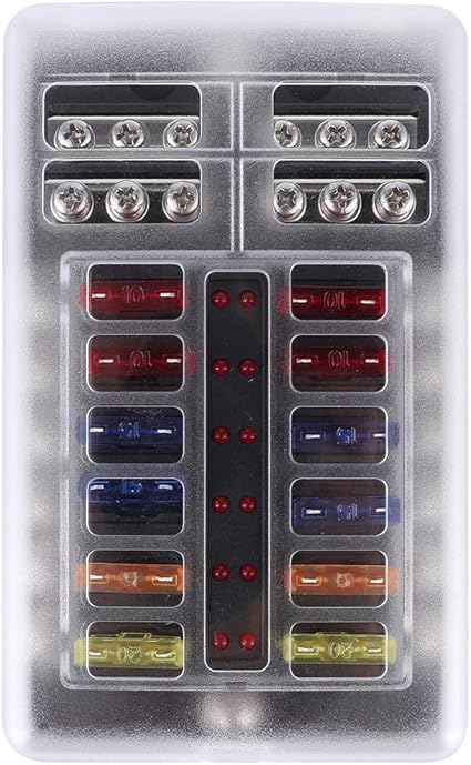 12 Yollu Sigorta Bloğu, LED Göstergeli 12V ABS Blade Sigorta Bloğu Tutucu Su Geçirmez Otomotiv Deniz Yat Için Otomotiv Yedek Sigorta Kutuları