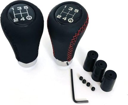 Araba Düz Vites Topuzu Shifter Siyah Deri Kırmızı 5 Hız Evrensel 8mm 10mm 12mm