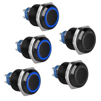 16mm Basmalı Düğme Anahtarı, 12V 5A Mandallı Basmalı Düğme Araba için LED Işıklı Kendinden Kilitlemeli AÇMA/KAPAMA Anahtarı, 5 Paket