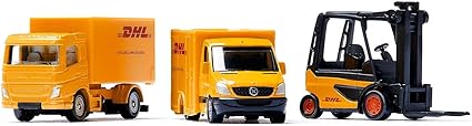 6335, Hediye Seti DHL Lojistik, Kamyon, Forklift, Paket Teslimat Arabası, Palet ve Paketler, Metal/Plastik, Sarı, Hareketli Parçalar