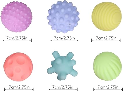 Duyusal Bebek Topları: 6’lı set | her topta farklı doku ve renkler | Duyusal ve zihinsel gelişim | banyo topları | havuz için uygun | dişlik ve banyo oyuncağı | bebek Montessori oyuncağı |
