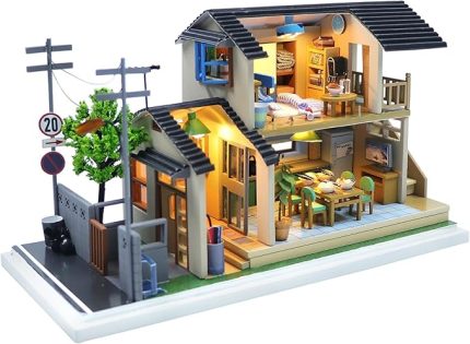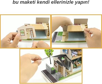 Ahşap Ev Maket Seti, LED Işıklı, DIY Hobi Kiti, Kendin Yap