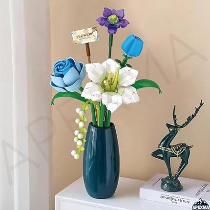 Çiçek Buketi Yapı Blokları Seti, Mini Bitki Tuğlaları Botanik Koleksiyonu Yapım Oyuncağı, Ev Dekorasyonu İçin Yaratıcı Yapay Çiçekler (4602-Mavi)