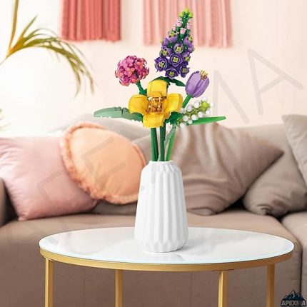 Çiçek Buketi Yapı Blokları Seti, Mini Bitki Tuğlaları Botanik Koleksiyonu Yapım Oyuncağı, Ev Dekorasyonu İçin Yaratıcı Yapay Çiçekler (4604-Mor)