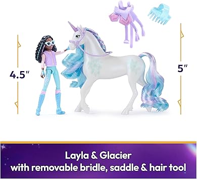 Academy Layla ve Tek Boynuzlu At Glacier seti – Sevilen Netflix dizisinden yaklaşık 12 cm orijinal figürler, 4 yaş+ için