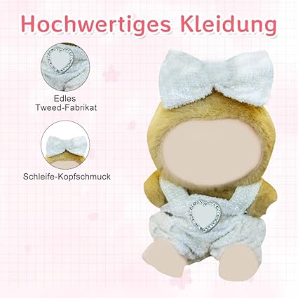 2’li set oyuncak bebek kıyafeti 17 cm oyuncak bebek için – La oyuncak bebekler için zarif birinci sınıf kıyafet, beyaz elbise ve fiyonklu saç tokası dahil – modaya uygun oyuncak bebek