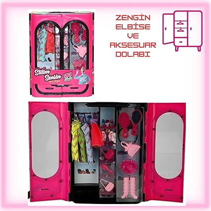 Oyuncak Anlily Zengin Kıyafet ve Aksesuarlı Şık Elbise Dolabı (2 Farklı Renk Seçeneği) (kırmızı)