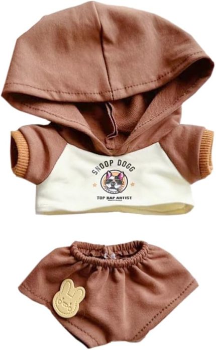 20 cm Peluş Bebek Giysileri Kapüşonlu Pantolon Karikatür Desen Spor Kıyafeti 8″ Bebekler Giydirme (Kahverengi)
