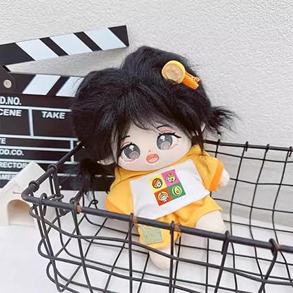 20 cm Peluş Bebek Giysileri Kapüşonlu Pantolon Karikatür Desen Spor Kıyafeti 8″ Bebekler Giydirme (Turuncu)