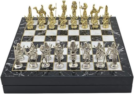 Büyük Boy Metal Mısır Satranç Tk. Parlak ve Mermer Desenli Sandıklı MDF Tahtası(36X36X6 cm.)
