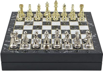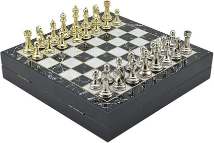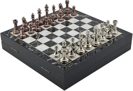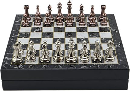Büyük Boy Metal Klasik Satranç Tk. Antik ve Mermer Desenli Sandıklı MDF Tahtası(36X36 cm.)