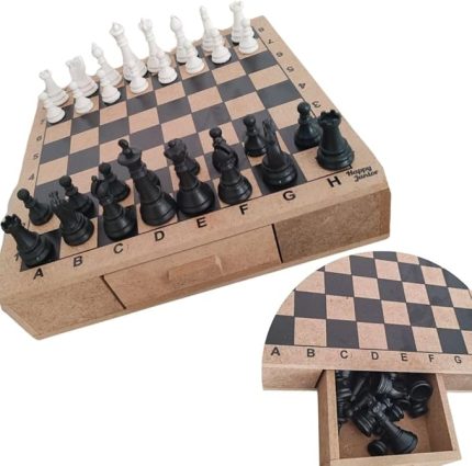 (Sadece Tahta İsteyene) Orta Boy Siyah Mermer Desenli MDF Ahşap Satranç Tahtası (37×37 cm)